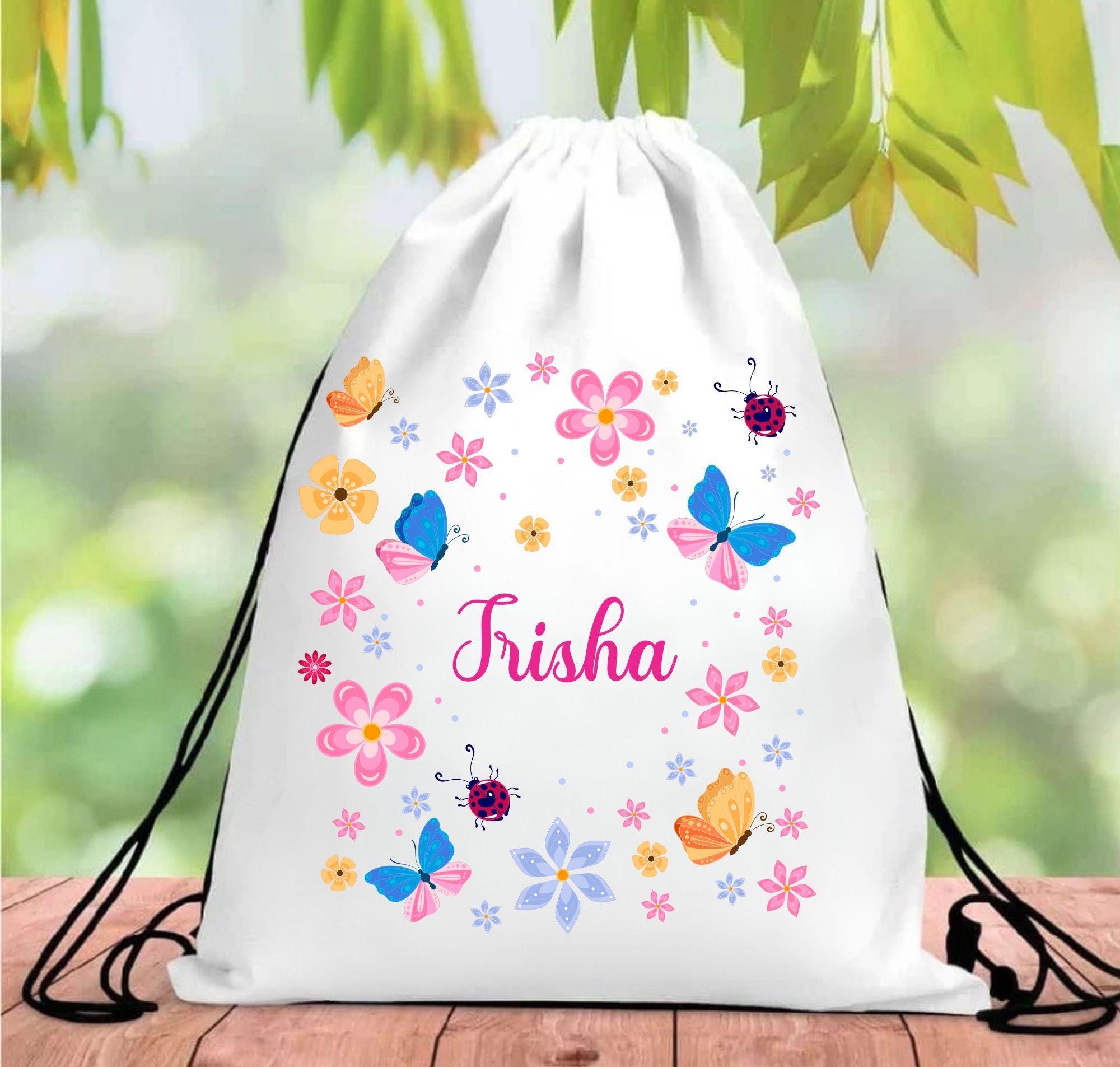 Personalised Butterfly Drawstring Bag