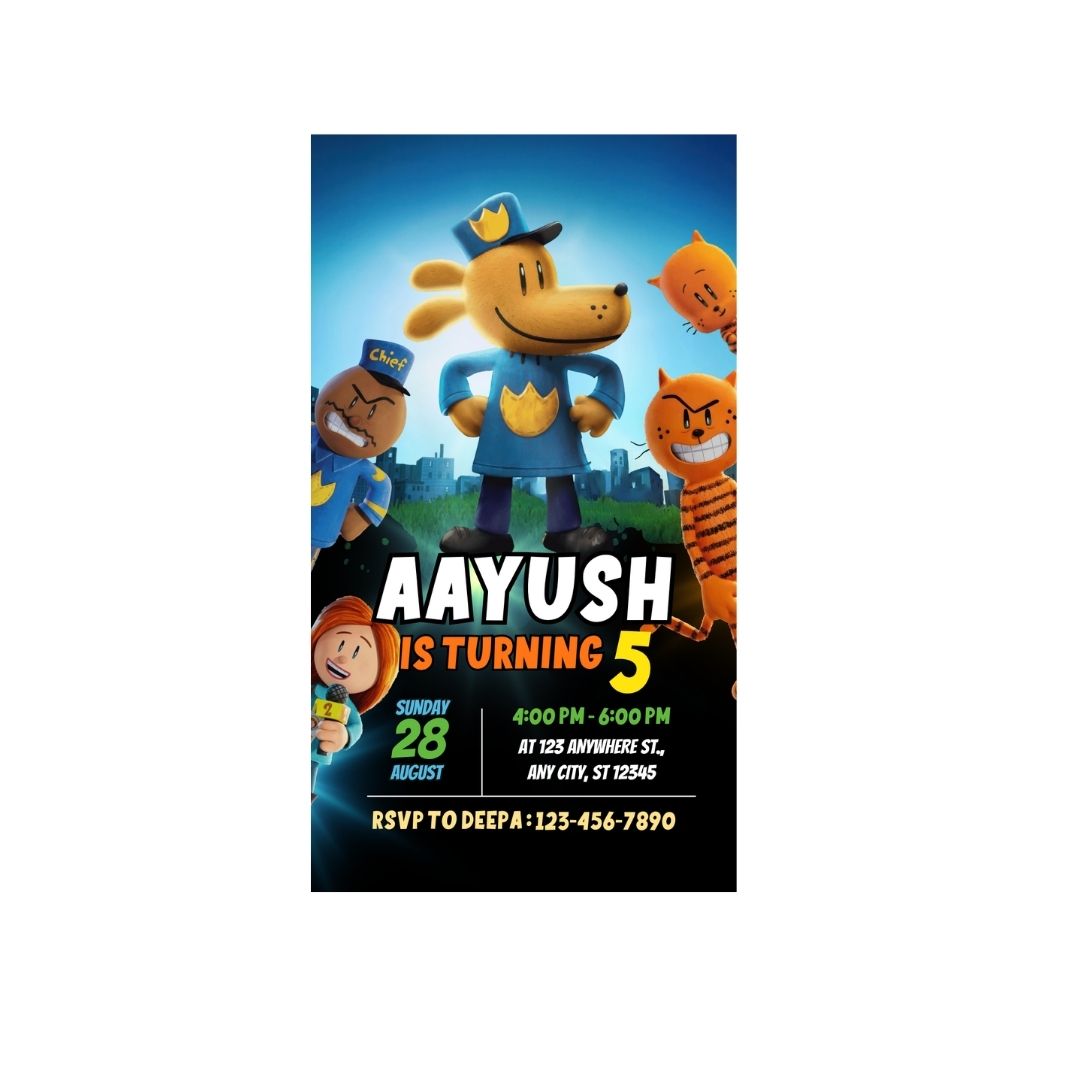 Our Dogman digital party invitations are here to add a touch of excitement and style to your upcoming event. Get ready to create memories that will last a lifetime by inviting your loved ones in style.